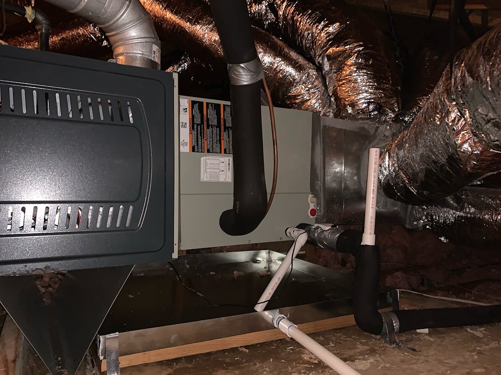 The homeowners old system (15 years old) had a rusted out drain pan that had leaked through and caused water damage.